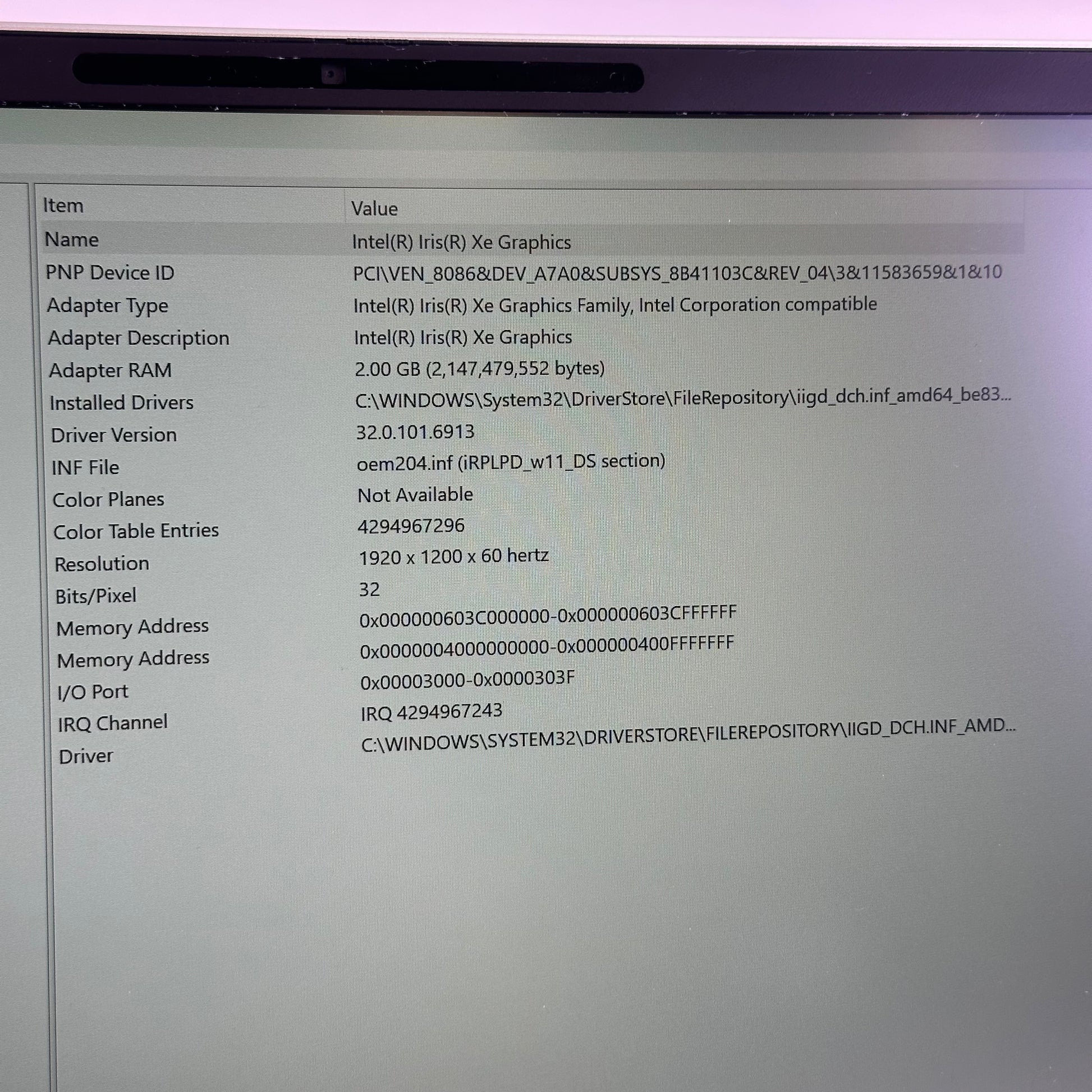 | Integrated Graphics | Intel Iris Xe Graphics |